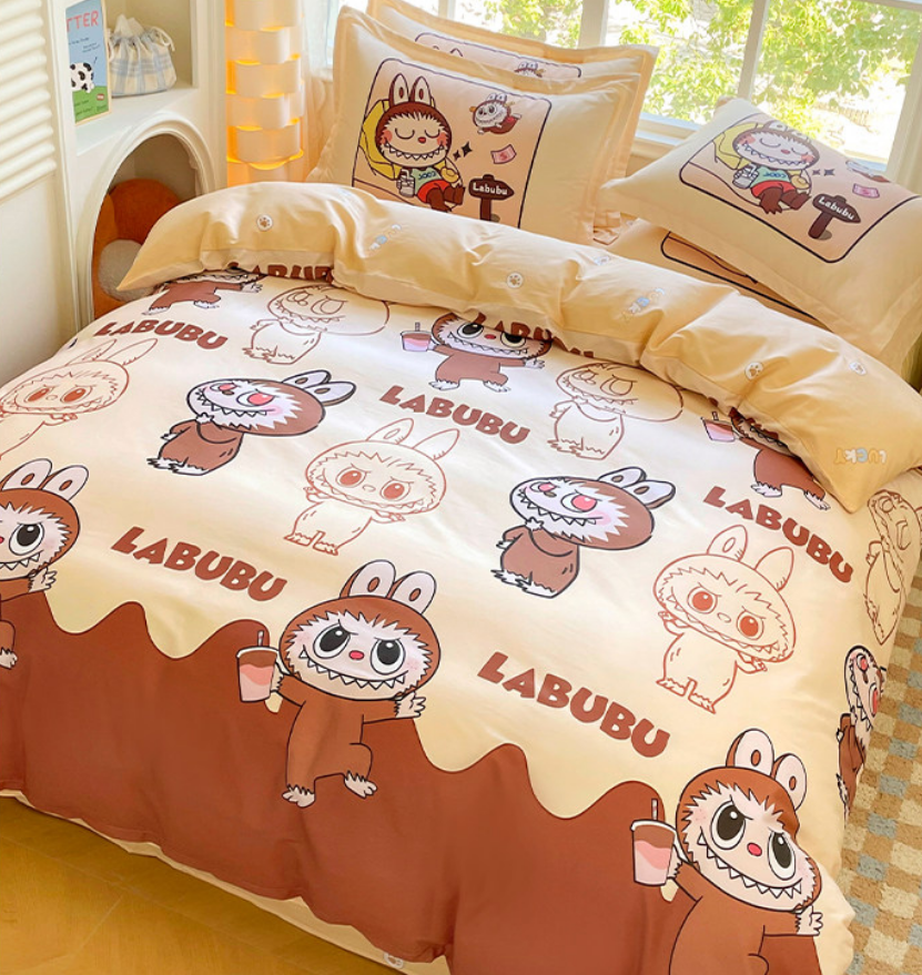100% قطن نقي مطبوع، طقم من أربع قطع مع لحاف مبطن، مناسب لكل الفصول، ناعم ومريح، لطيف على البشرة وقابل للغسل في الغسالة مباشرة.